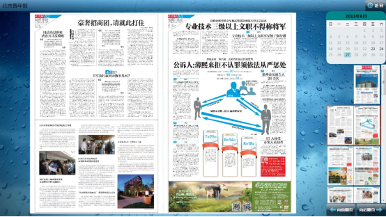 3、界面右側包含:日歷、報紙縮略圖瀏覽和翻頁按鈕。
