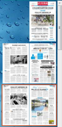 2、 縮略圖翻頁:點擊界面右側的報紙縮略圖,實現(xiàn)翻頁??s略圖外有紅框,表示當前正在顯示的報紙內(nèi)容頁面。
