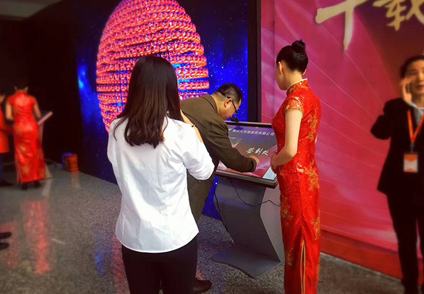 3.電子簽名:來(lái)賓在簽到屏上簽名,內(nèi)嵌的毛筆書寫藝術(shù)效果,將東方傳統(tǒng)文化元素與新技術(shù)進(jìn)行完美結(jié)合,彰顯主賓尊貴身份。