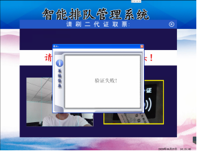 5、若“人臉”和“身份證”不是同一個人,或者相差很大,則系統(tǒng)會提示“驗證失敗”將不會打印出票號。
